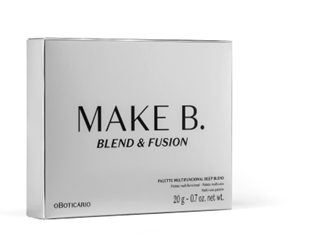 A principal novidade é a Make B. Palette Multifuncional Blend & Fusion, que reúne 12 cores e conta com fórmula cream to powder, textura cremosa e acabamento semi-matte que se transforma em pó ao toque da pele. Versátil, a paleta possibilita criar o rosto completo, podendo ser usada como base, corretivo, bronzer, contorno, blush, iluminador e sombra, além de permitir a criação de camadas e a combinação de tons para personalizar o acabamento. O lançamento chega em duas versões: Soft Fusion e Deep Blend, desenvolvidas para atender diferentes tonalidades de pele.