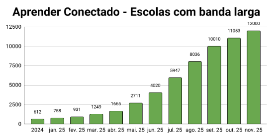 O diretor-geral da Eace destaca ainda que a entidade tem “trabalhado em ritmo acelerado para assegurar que mais e mais professores, alunos e equipes pedagógicas possam usufruir dos recursos da conectividade”. Até o final de 2024, o Aprender Conectado tinha levado a banda larga a 612 estabelecimentos públicos de ensino básico. Em menos de um ano, o crescimento foi de quase 1.900%.