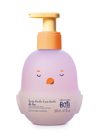 O ritual começa com o banho utilizando a Espuma de Banho Boti Baby Lua, que limpa com suavidade, não arde os olhos e cria uma espuma cremosa com fragrância relaxante.