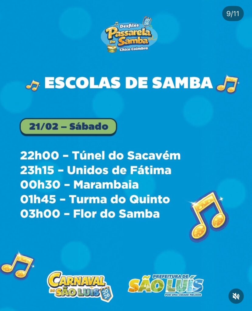 Carnaval 2026Últimas Noticias Carnaval 2026: Confira a ordem do desfile das escolas de samba neste sábado (21)
