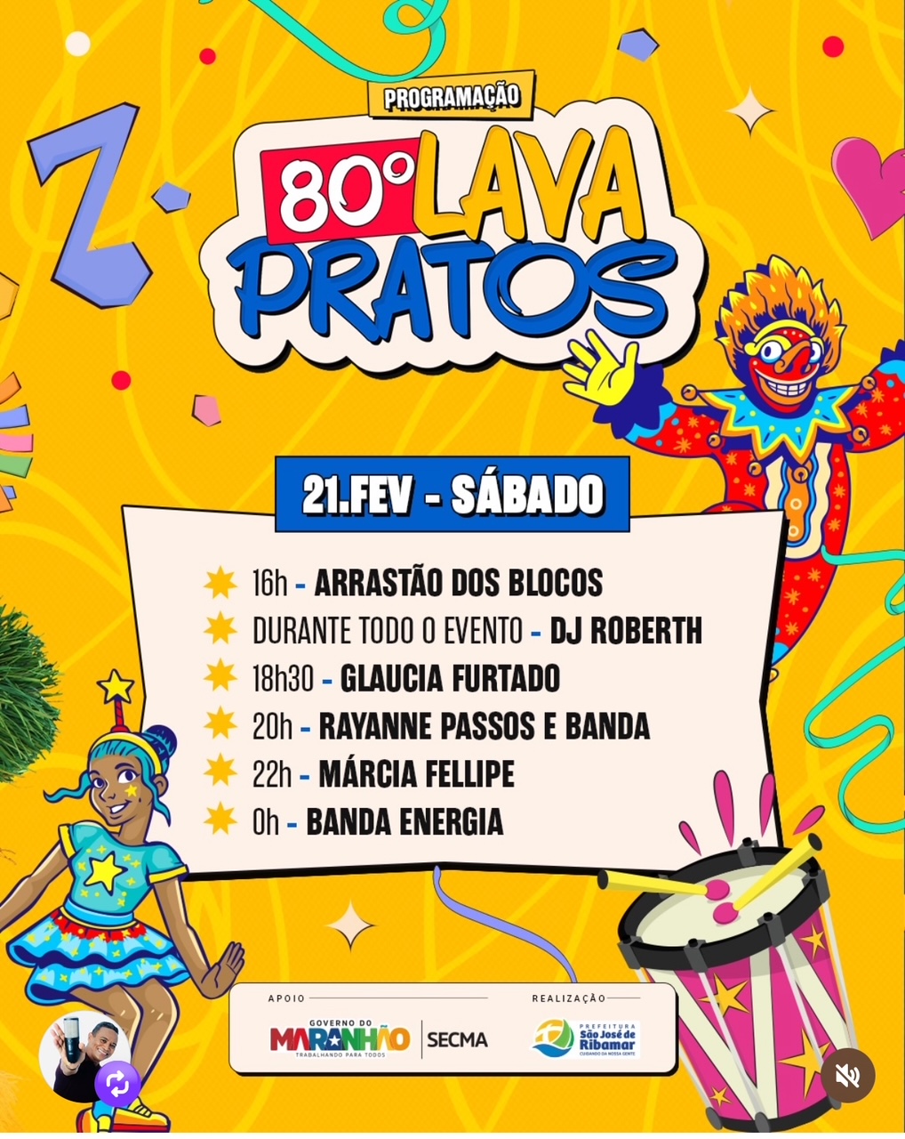 Carnaval 2026Últimas Noticias Carnaval 2026: Confira a programação deste sábado (21) do Lava-Pratos de São José de Ribamar