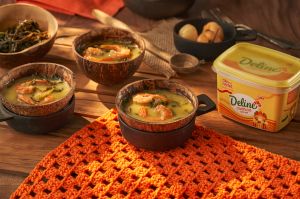 1. Aqueça a Deline Cremosa em panela e refogue o camarão. Acrescente as folhas do jambu e a água e cozinhe até que os camarões estejam macios. Retire os camarões da panela e reserve a água da cocção.