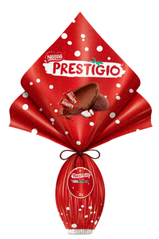 O Ovo de Páscoa Nestlé® Prestígio® Chocolate ao Leite com Recheio de Coco (225g) traduz para o formato sazonal a combinação icônica de chocolate ao leite e coco que consagrou a marca. Com casca de chocolate ao leite e recheio cremoso de coco, o produto aposta no contraste de texturas e no apelo nostálgico para a data. Posiciona-se como opção tradicional no portfólio da Páscoa, voltada a consumidores que priorizam sabores clássicos.
