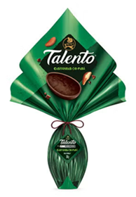 O Ovo de Páscoa Garoto® Talento® Meio Amargo (350g) aposta em maior teor de cacau para entregar sabor mais intenso e equilibrado. Com perfil sofisticado e menos adocicado, posiciona-se como opção para consumidores que preferem chocolates com notas mais marcantes na Páscoa.