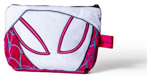 Necessaire compacta e aveludada, com acabamento bordado e estampa dupla face, com as máscaras de Miles Morales e Gwen Stacy.