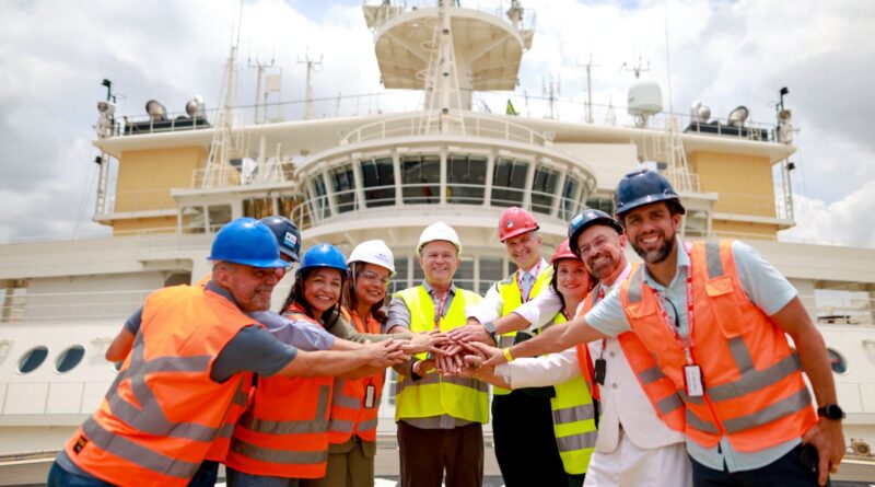 Uma comitiva integrada pelo governador do Maranhão, Carlos Brandão, executivos globais da TGS e autoridades vinculadas ao setor energético, esteve no porto para a recepção oficial do navio, considerado a maior embarcação sísmica do mundo.