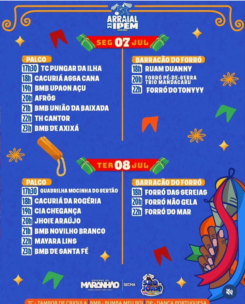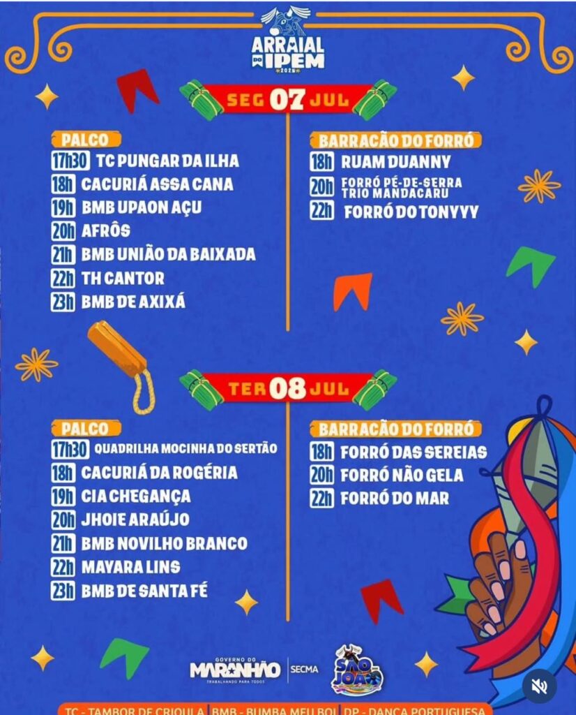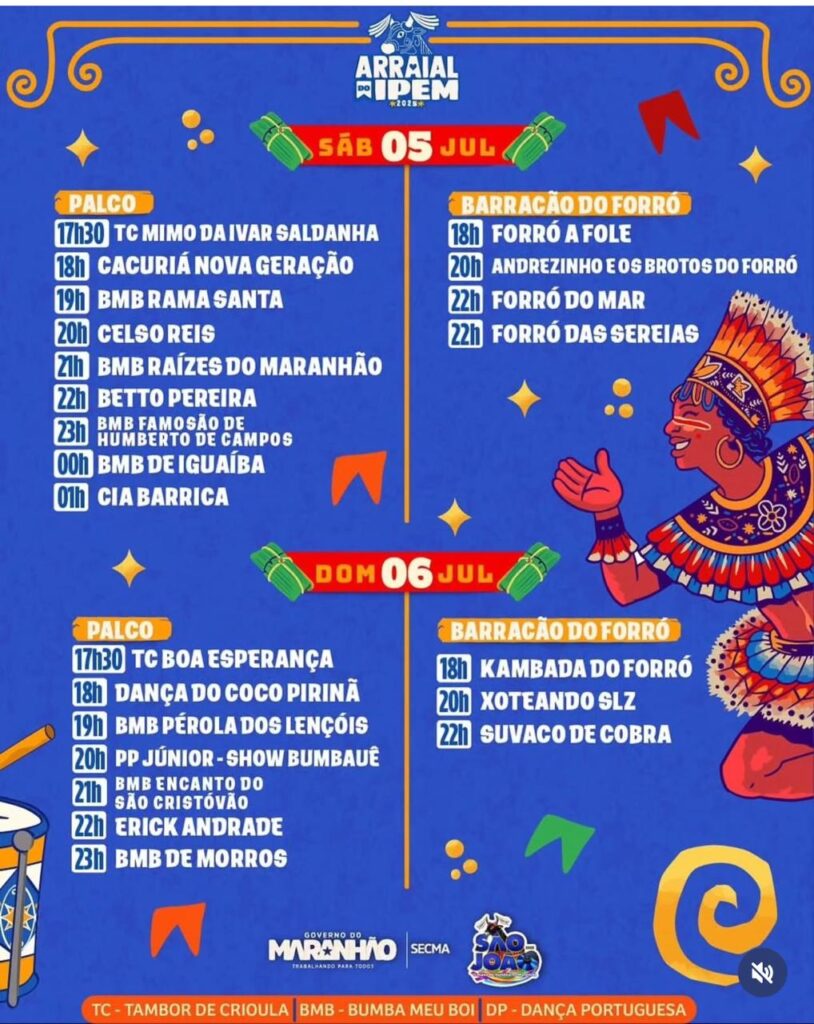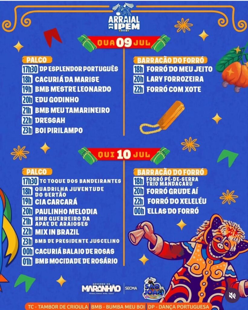 PlantãoSão João 2025Últimas Noticias Programação do Arraial do IPEM de 01 a 13/07 1 de julho de 2025 omaranhense Confira a programação do Arraial do IPEM